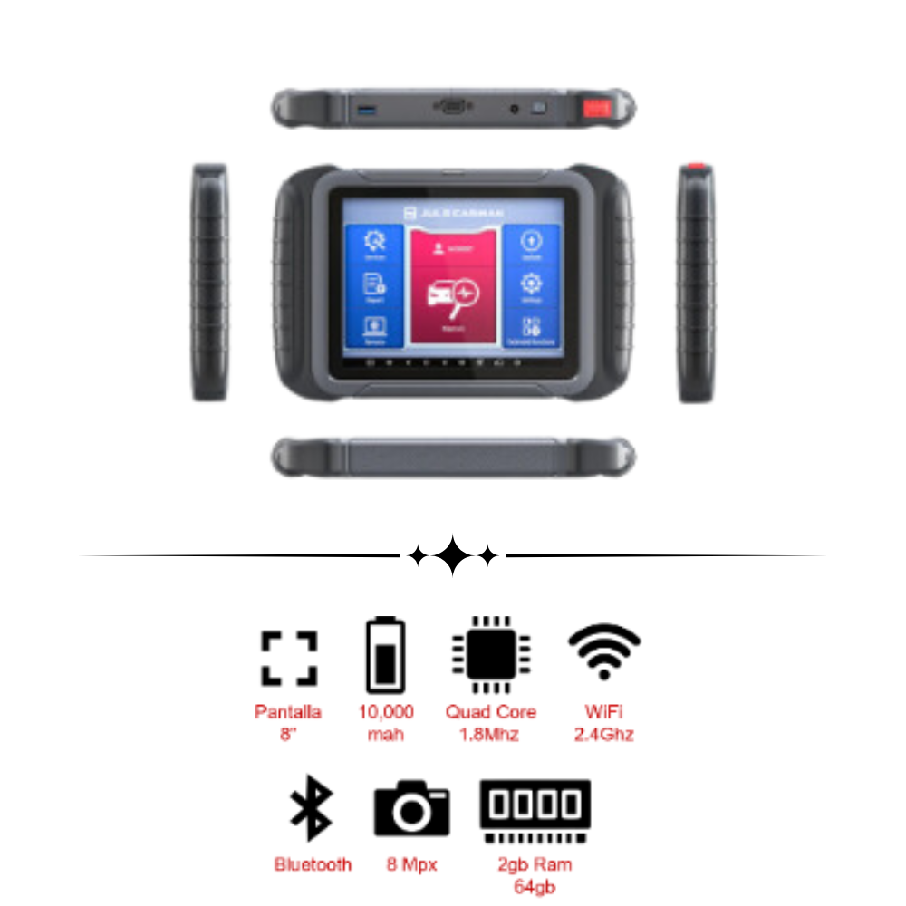 - El sistema de diagnóstico inteligente JULS CARMAN es una herramienta de escaneo avanzada basada en el sistema operativo Android. Admite varios idiomas y es adecuado para diferentes países y regiones. La ventaja de este escáner OBD-II (On-Board Diagnostics versión 2) son sus funciones integrales y su capacidad para proporcionar rápidamente al usuario información de diagnóstico más precisa.